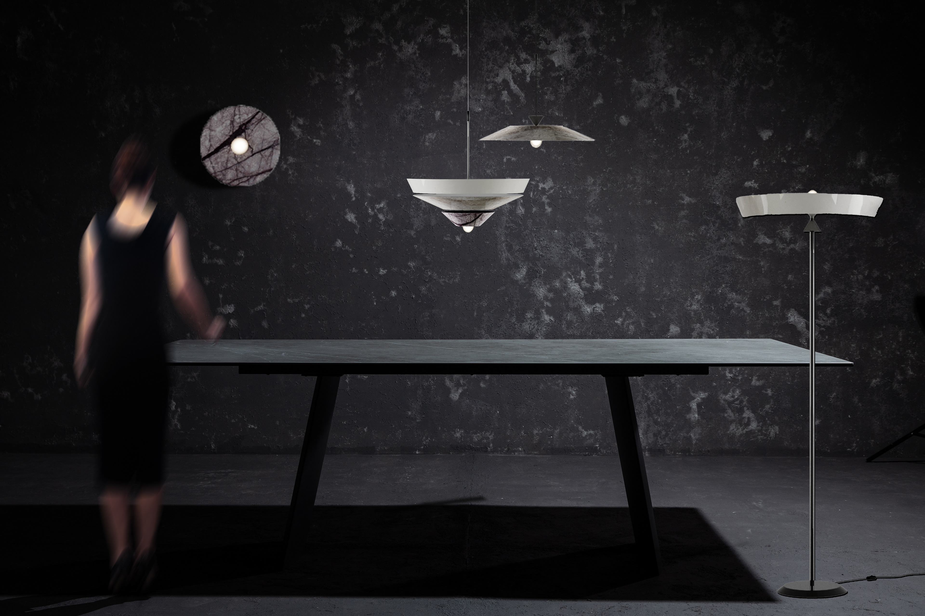 Bu aydınlatma koleksiyonu, hem form hem de işlev açısından doğadan ilham alan yenilikçi bir tasarım anlayışıyla geliştirilmiştir. Tek bir formun üç parçaya ayrılmasıyla şekillenen tasarım, her bir parçanın bağımsız birer aydınlatma elemanına dönüşmesiyle şekilleniyor.