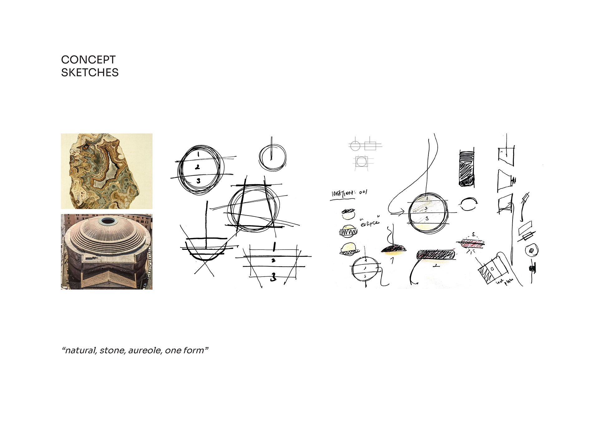 Tasarımın ana malzemesi olarak doğal taş seçilmiştir. Bu tercihin ardında, doğal taşın dokusal zenginliği ve ışıkla olan etkileşimindeki benzersiz özellikleri yer alıyor. Doğal taş, ışığı yumuşak bir şekilde geçirirken aynı zamanda ona bir derinlik ve katmanlılık kazandırıyor. Işığın taş üzerindeki oyunları, mekâna hem sıcak hem de organik bir atmosfer kazandırıyor. Aynı zamanda, doğal taşın dayanıklılığı ve zamansız estetiği, bu aydınlatma elemanlarının uzun ömürlü ve kalıcı olmasını da sağlıyor.