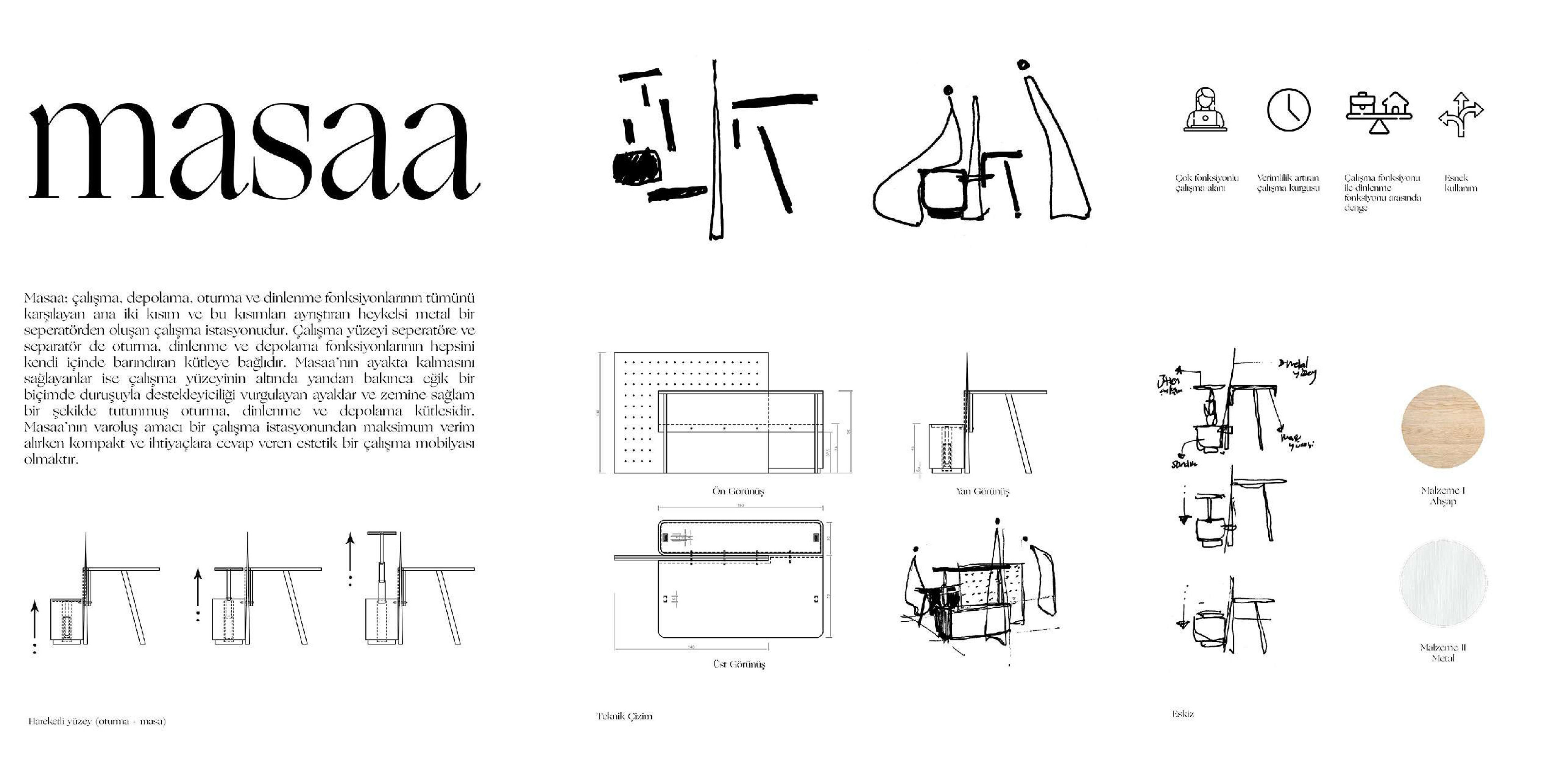 Doğal ahşap ve metalin uyumuyla minimalist bir estetiğe sahip olan Masaa, her mekana kolayca uyum sağlar. Sağlam yapısı ve dayanıklı malzemeleri sayesinde uzun ömürlü bir kullanım sunar.