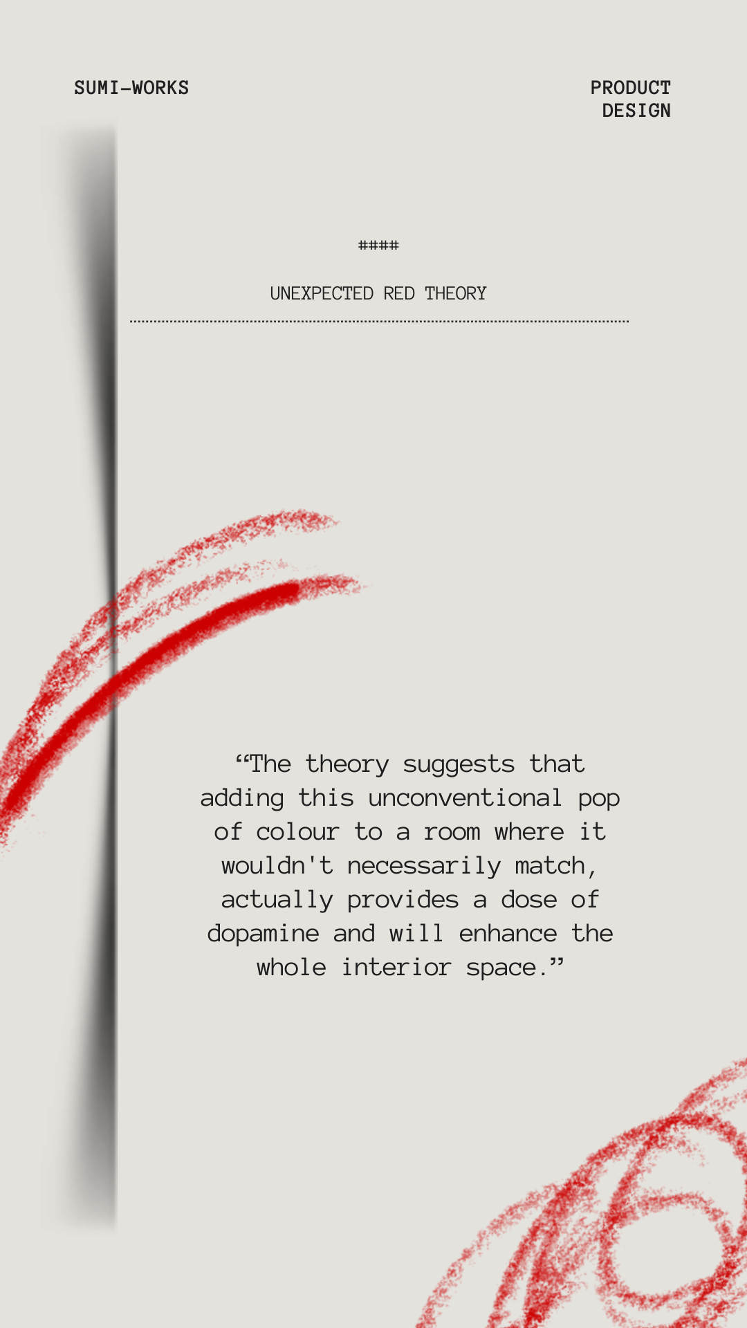 Design Process: The project began with my personal connection to sketching, which I regard as the most immediate and authentic step of the design process. Red Box was developed as a way to materialize this connection: the sketch is placed within a frame that elevates it from a process note into a finished design object. Every detail of the frame was considered as part of the storytelling: proportions, materiality, and the role of color.
