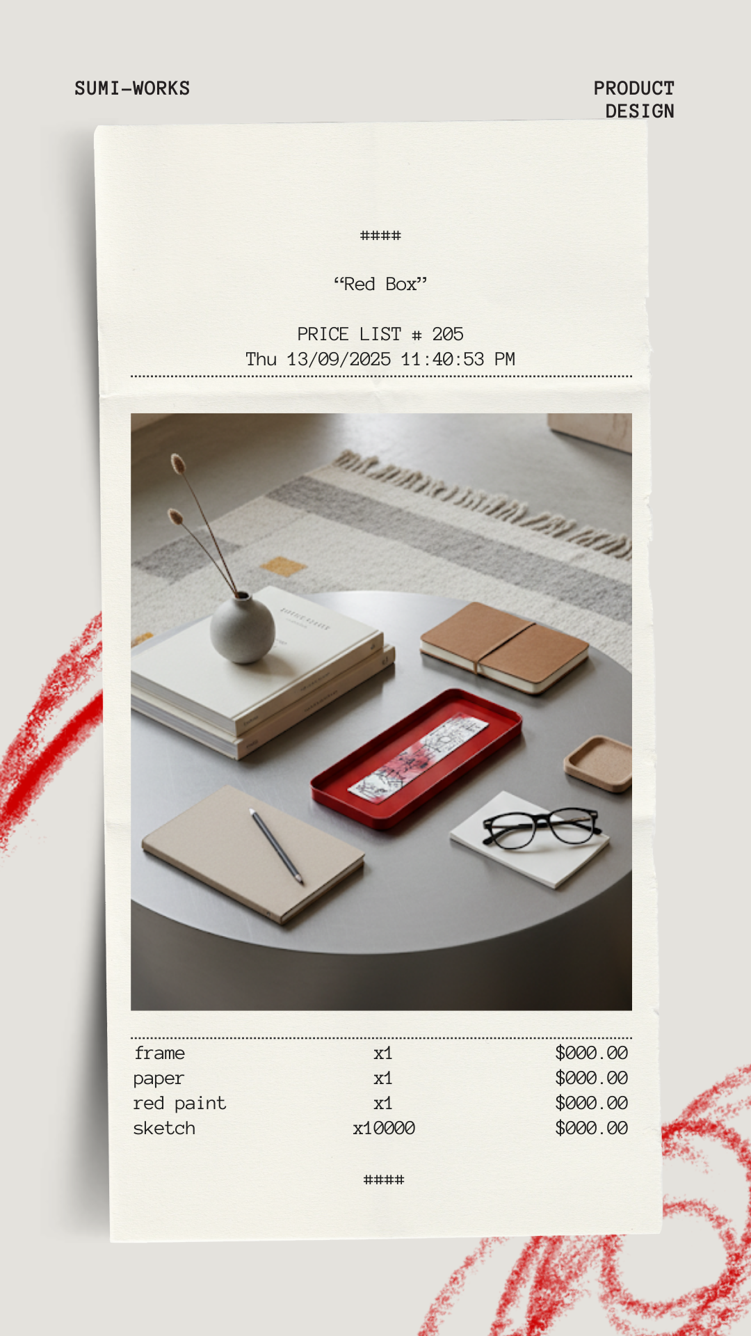 Red Box is both a product and a statement. It underlines the value of sketching in design thinking while offering a contemporary object that combines narrative, visual identity, and spatial imagination.